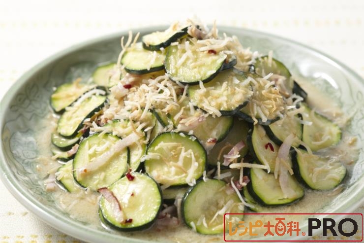 ボウルにAを入れて混ぜ、ズッキーニを入れてサッと混ぜ、ズッキーニがしんなりしたら水気をしぼる。