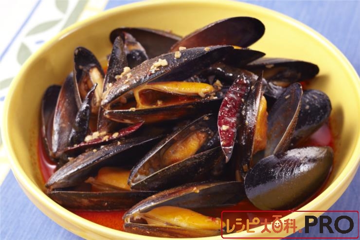 鍋にAを入れて火にかけ、貝の口が開いたら、煮汁ごと冷まし、冷めたら、貝と煮汁に分け、煮汁はこしておく。