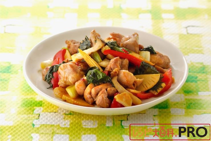 香味野菜がさわやかに香る鶏肉と彩り野菜の炒め物