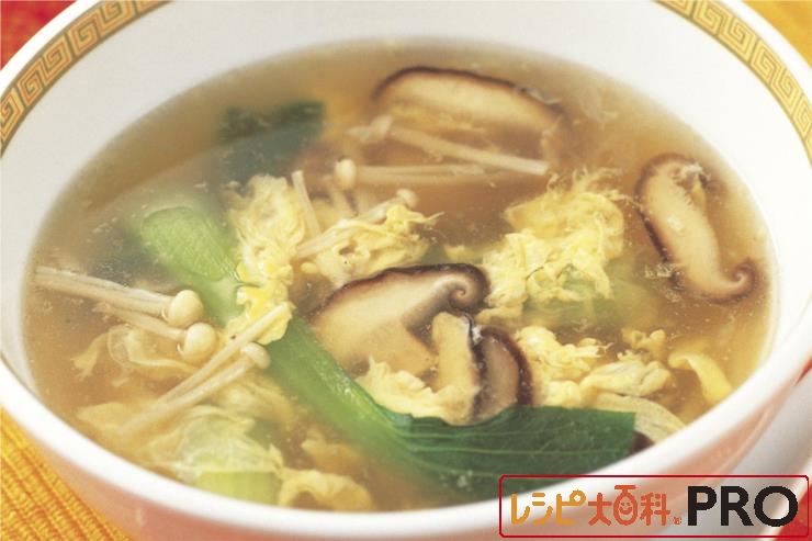 きのことチンゲン菜入り!ふんわり卵の中華スープ
