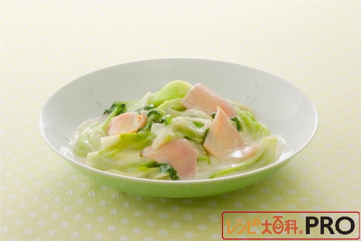 ハムとチンゲン菜の中華炒め 豆乳煮