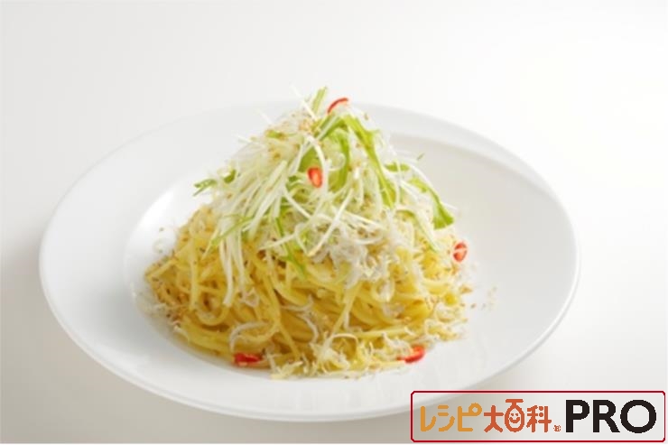 ゆであがったスパゲティーを(1)に加え、ソースを絡める。