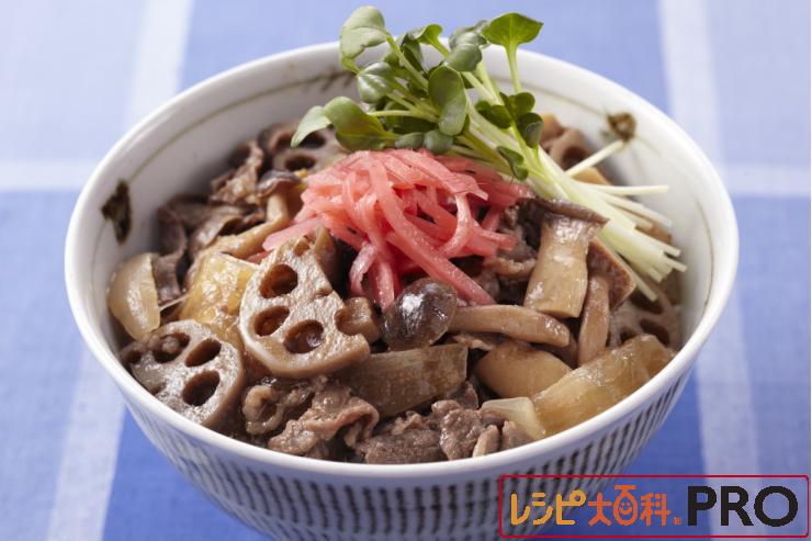 器にご飯を盛り、(1)を盛りつけ、Cをのせる。