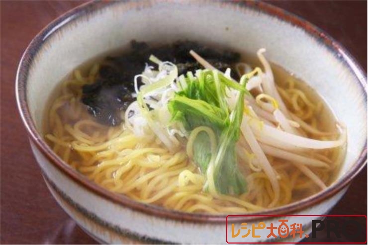 中華めんをゆで、器に盛り、(1)のスープを注ぐ。