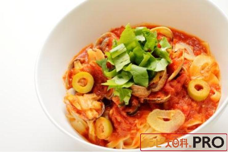 濃厚なトマトソースで食べるパスタ