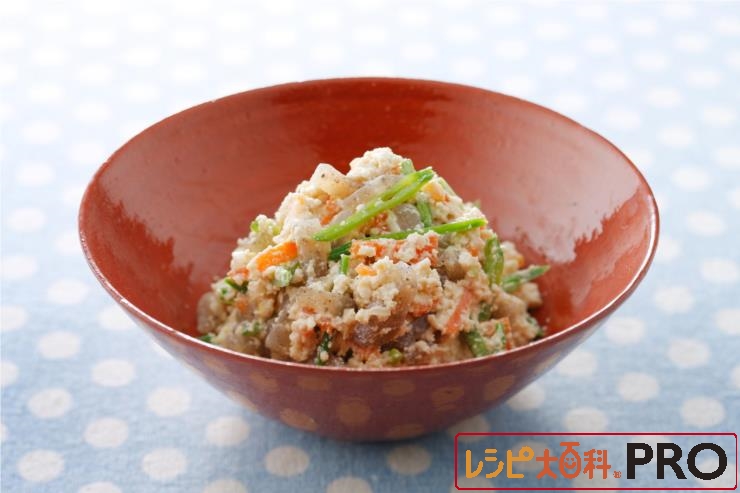 すり鉢にA、(1)を入れてすり、クリーム状のあえ衣を作る。