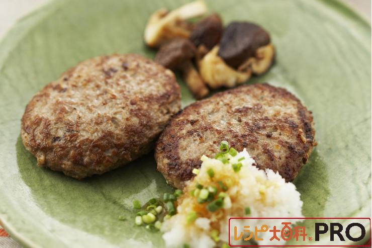しいたけ・れんこん入りハンバーグ。食感のアクセントに!