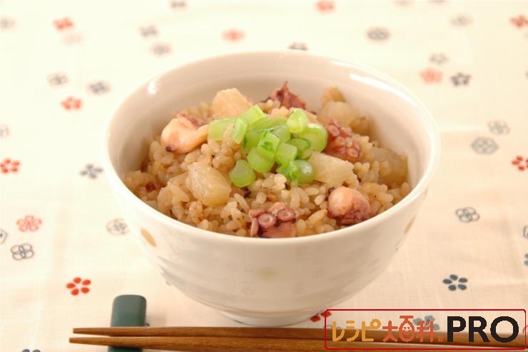 たこと大根入り!彩りもよい炊き込みご飯。