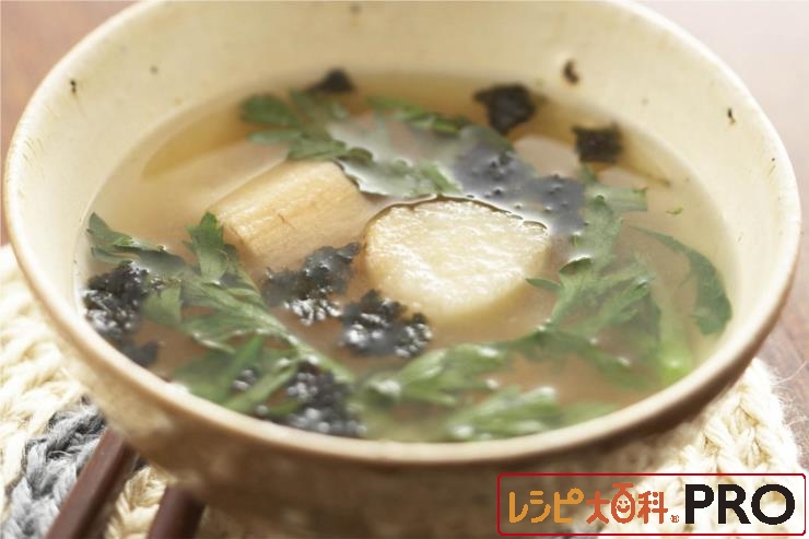 春菊の香りただようお味噌汁