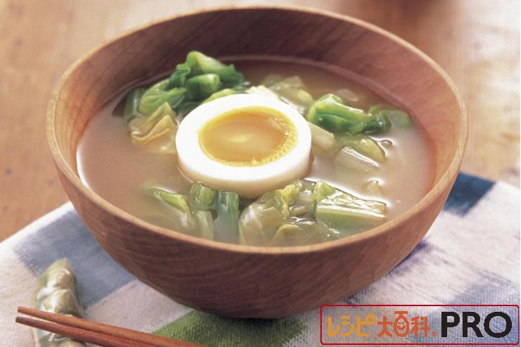 鍋にAを入れて火にかけて煮立ってきたら、キャベツを加えて2~3分、少しシャキシャキ感が残る程度まで煮て、みそを溶き入れる。