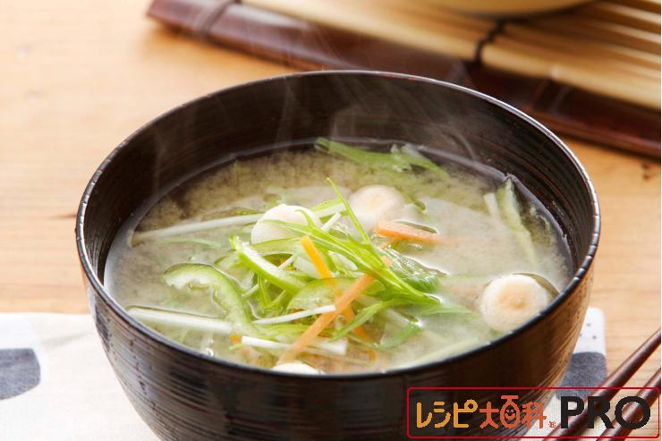 鍋にBを入れ、Aの具を加え、みそを溶き入れ、ひと煮立ちさせる。