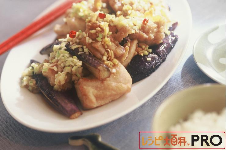 カラッと揚げたチキンとなす、辛味を効かせたタレが相性抜群!