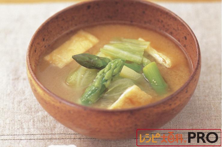 キャベツとアスパラのみそ汁