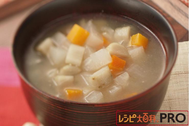 ころころ根菜たっぷりの味噌汁にすりごまでコクアップ!