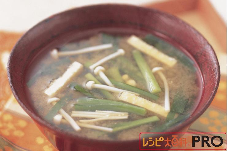 えのきだけのうま味と油揚げのコクがひかるお味噌汁