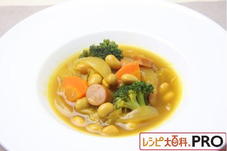 大豆と野菜のトマトコンソメスープ・カレー風味<病院・介護施設向け>