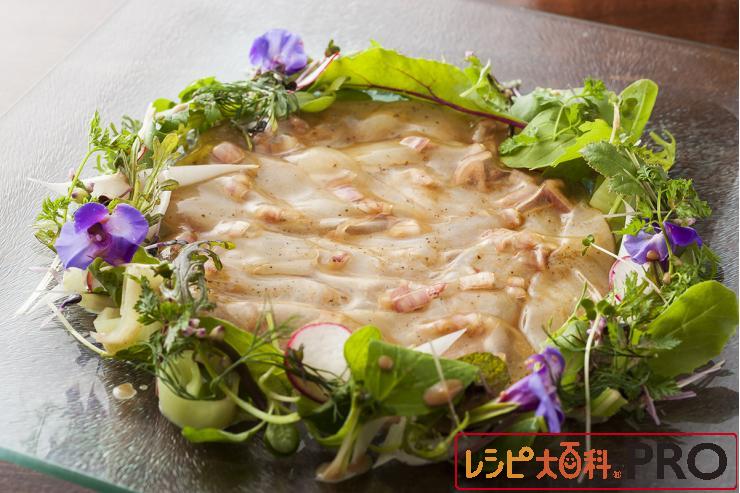 コンソメのジュレをまとった鮮魚のカルパッチョ