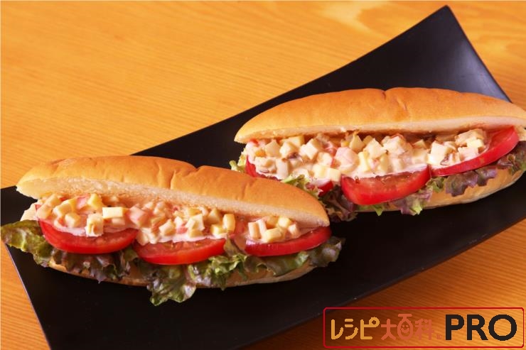 横に切れ目を入れたドックパンにB、(1)を挟む。