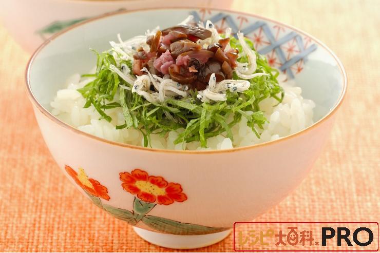 茶碗に(1)のご飯を盛り、Aを順にのせる。
