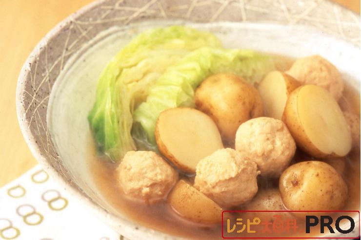 新じゃがいもと鶏つくねのころころとした見た目もかわいい炊き合わせ