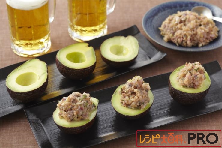 アボカドに(1)をのせて、スプーンなどですくいながら食べる。