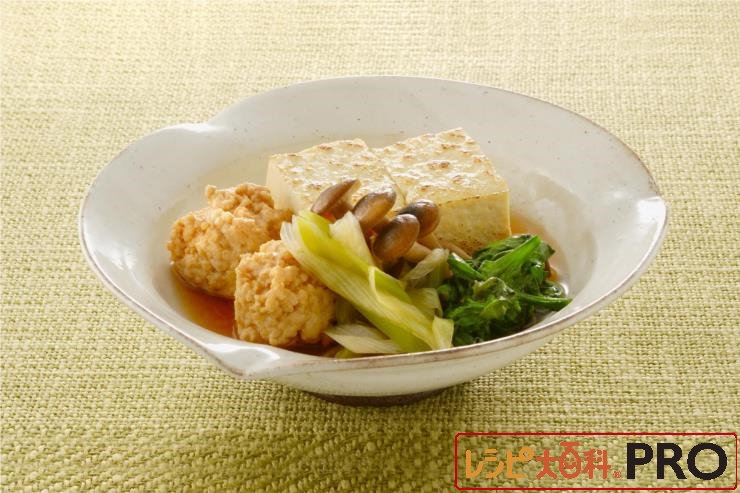 鶏ひき肉のだんごを入れたボリューム満点肉豆腐。