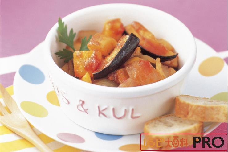 鍋にオリーブオイルを熱し、にんにく、なすを炒め、
