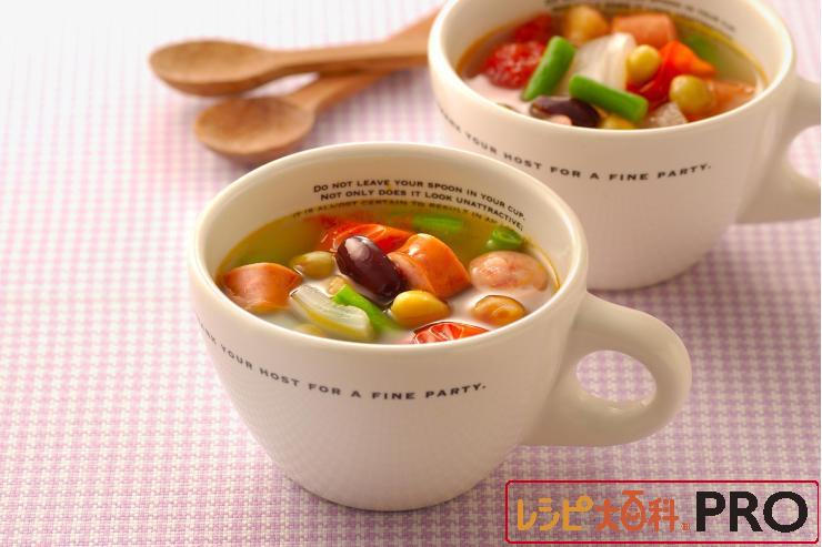 たっぷりお豆とカラフル野菜の食べごたえのあるスープ