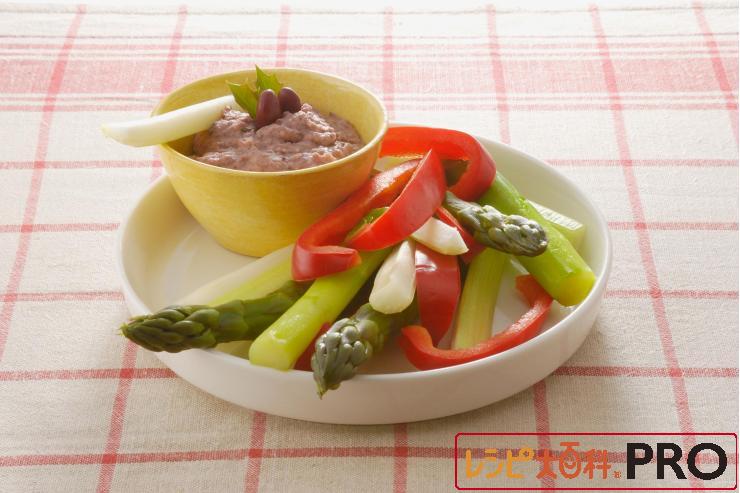 器にDの野菜スティックを盛り、(2)のディップをつけていただく。