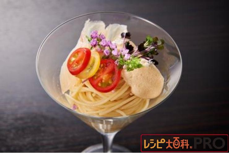 カッペリーニをゆで、冷水でしめて、水分をしっかりときる。