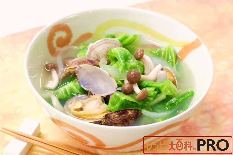 あさりときのこのうま味と春キャベツの甘みたっぷりスープ