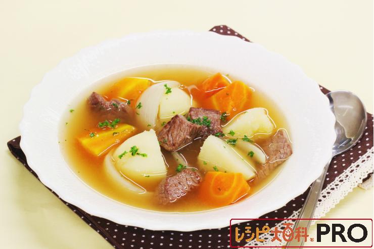 ホクホクのじゃがいもとジューシーな牛肉のうま味がきいたスープがおいしい!