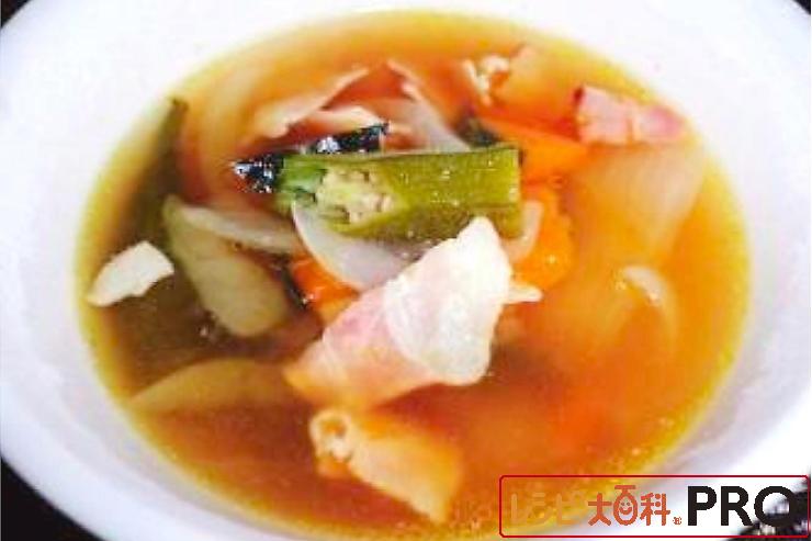 かぼちゃのやさしい甘みがおいしい夏野菜たっぷり洋風スープ