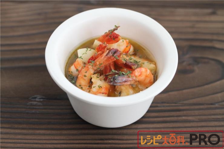 にんにくの香りが食欲そそる!バルの定番えびのガーリックオイル煮