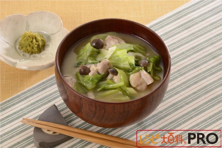 キャベツと鶏肉のみそ汁