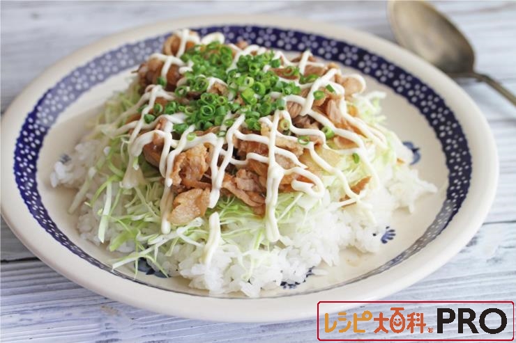 器にご飯をよそい、キャベツ、(1)の順にのせる。