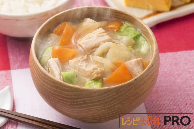たっぷり野菜の味噌汁にツナをのせてボリューム満点!