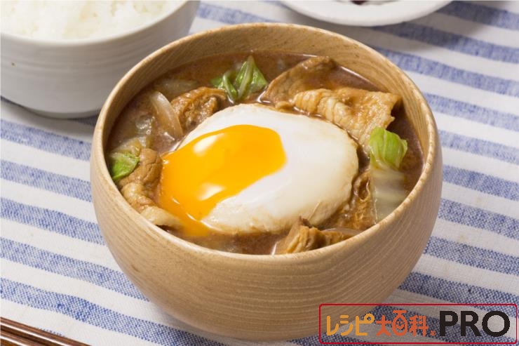 白菜がやわらかくなったら、みそを溶き入れて弱火にし、卵を1個ずつ割り入れ、半熟になるまで煮る。