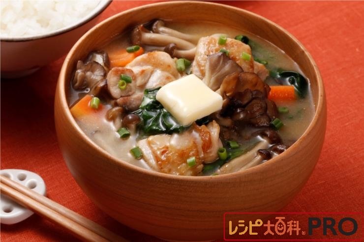 Bを加えて煮、火が通ったら、ほうれん草を加えてひと煮する。みそを溶き入れ、器に盛り、小ねぎを散らし、好みでバターをのせる。