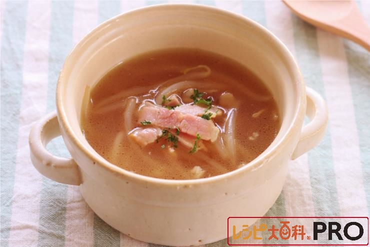 鍋に油を熱し、ベーコンを炒める。脂が出たらもやしを加えて炒め、こしょうをふり、Aを加えて煮る。