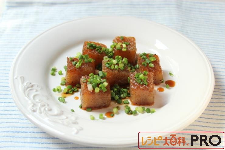 こんにゃくは表面に格子状に切り込みを入れ、1cm角に切る。