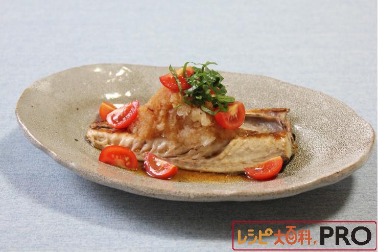 フライパンに油を熱し、(1)を入れて焼く。両面焼き色がついたらフタをして5分蒸し焼きにし、火が通ったら器に盛り、大根おろしをのせる。