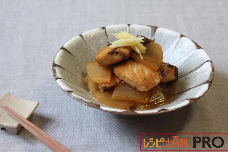 フライパンに油を熱し、ぶりを入れて両面焼く。酒をふり、(1)を汁ごと加え、Bを加えて強火で4分煮る。