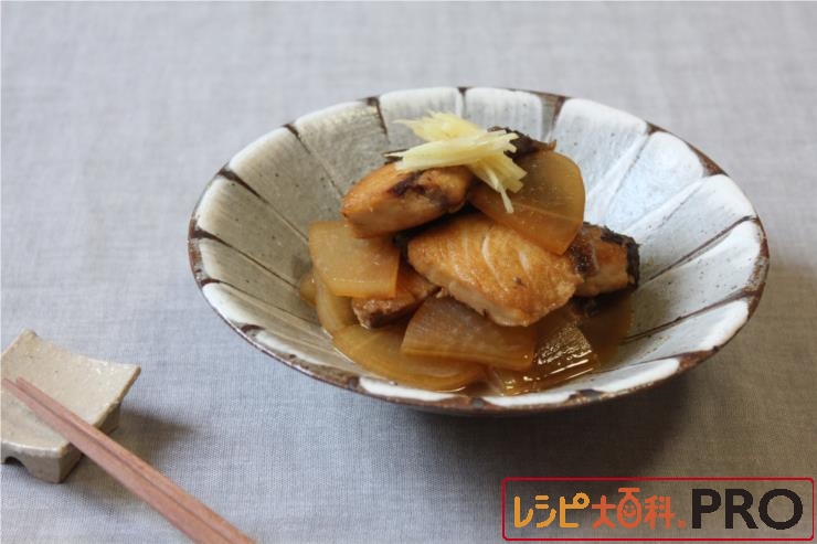 フライパンに油を熱し、ぶりを入れて両面焼く。酒をふり、(1)を汁ごと加え、Bを加えて強火で4分煮る。