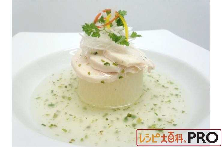 (1)の鶏むね肉の皮をむき、食べやすくスライスし、大根は温め直して3枚に切る。