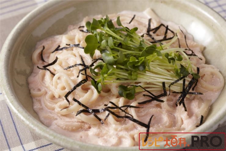 フライパンにAを入れてひと煮立ちさせ、うどん、明太子を入れてサッと混ぜる。