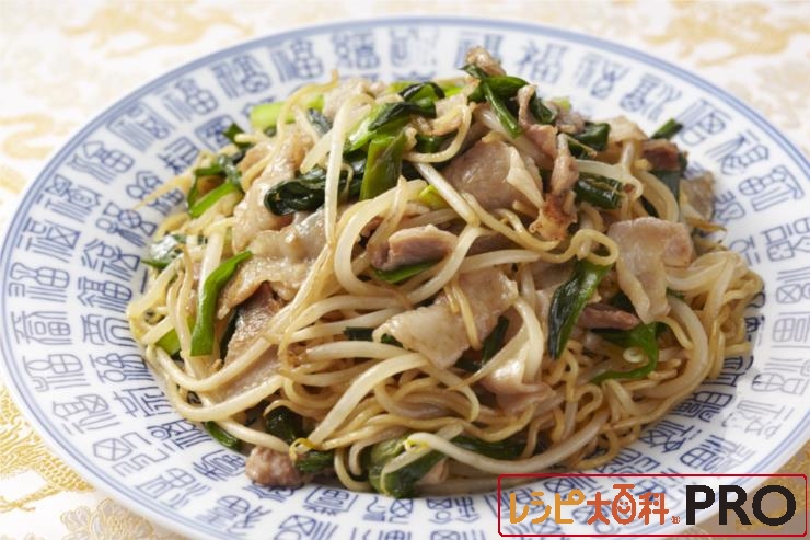 熱したフライパンにサラダ油12gをひき、めんを入れ、ほぐしながら軽く焦げ目がつくまで炒め、取り出しておく。