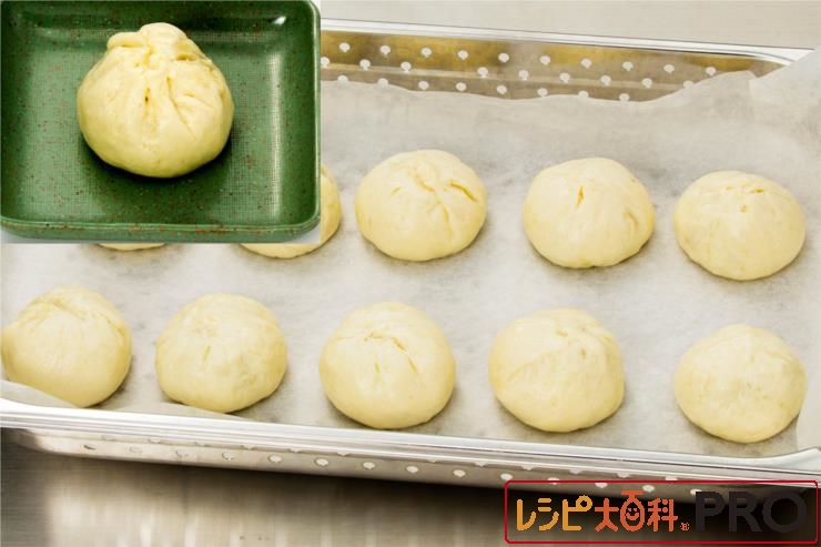 (3)の生地を10等分にして、(4)を入れて包む。