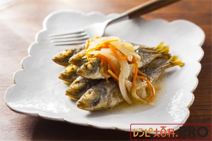 バットに(1)を入れ、熱いうちに「セミセパ®」レモンドレッシングをかけて漬け込み、冷蔵庫で休ませる。