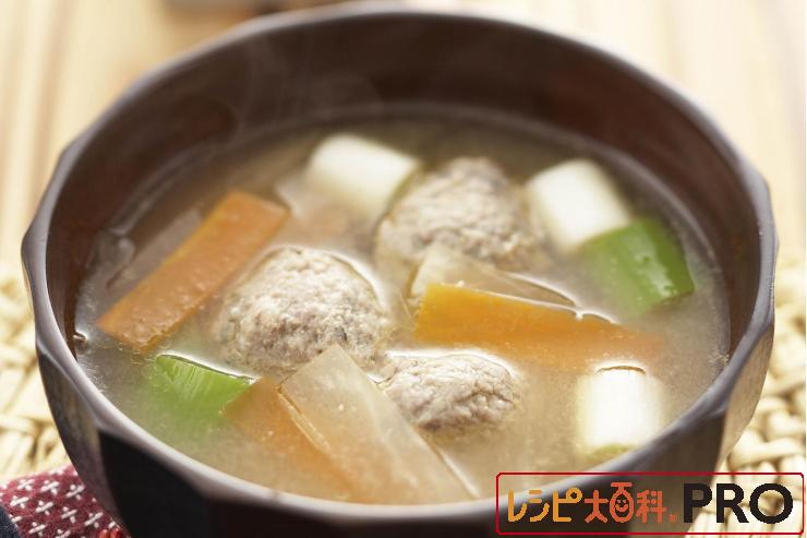 鍋にCを入れて煮立て、(1)をスプーンで直径2cmくらいのだんごにして入れる。弱火にしアクを取る。